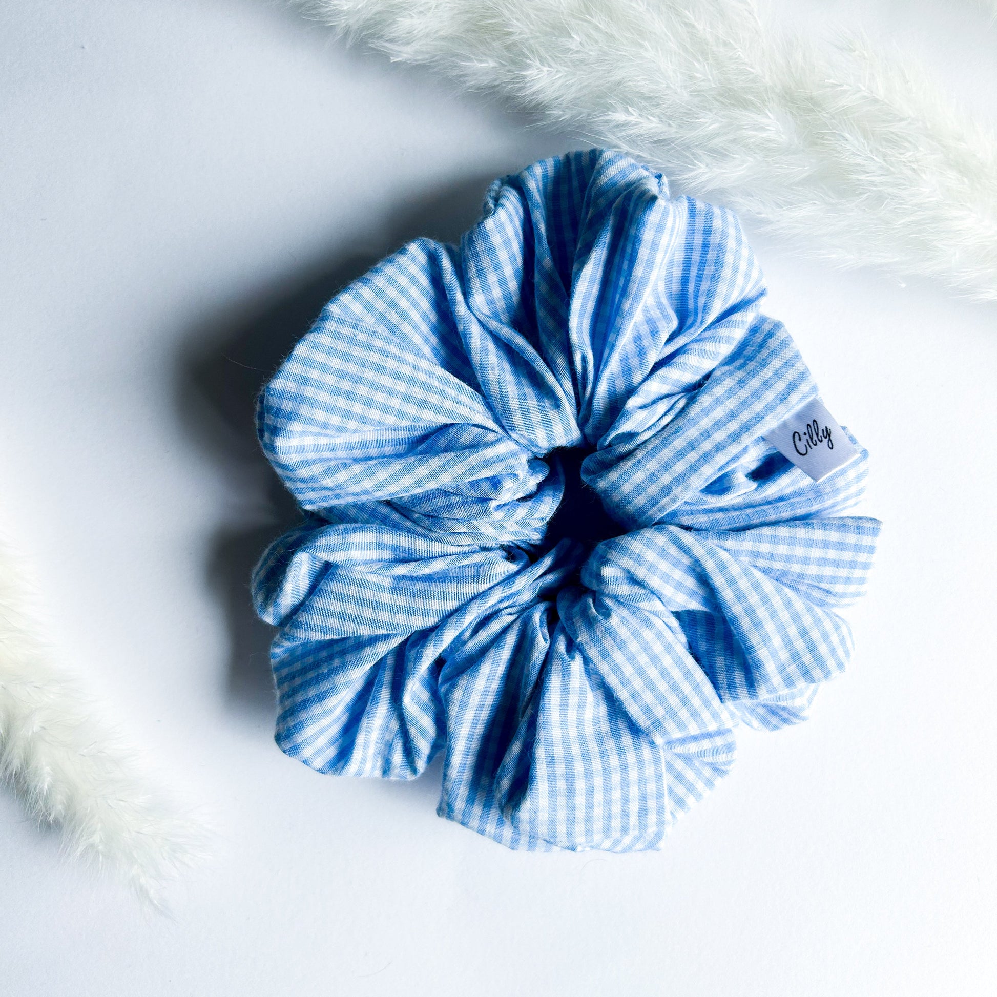 Gigi XL Scrunchie mini ruit Licht blauw